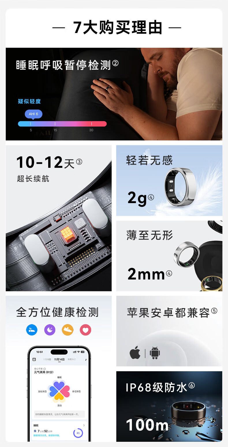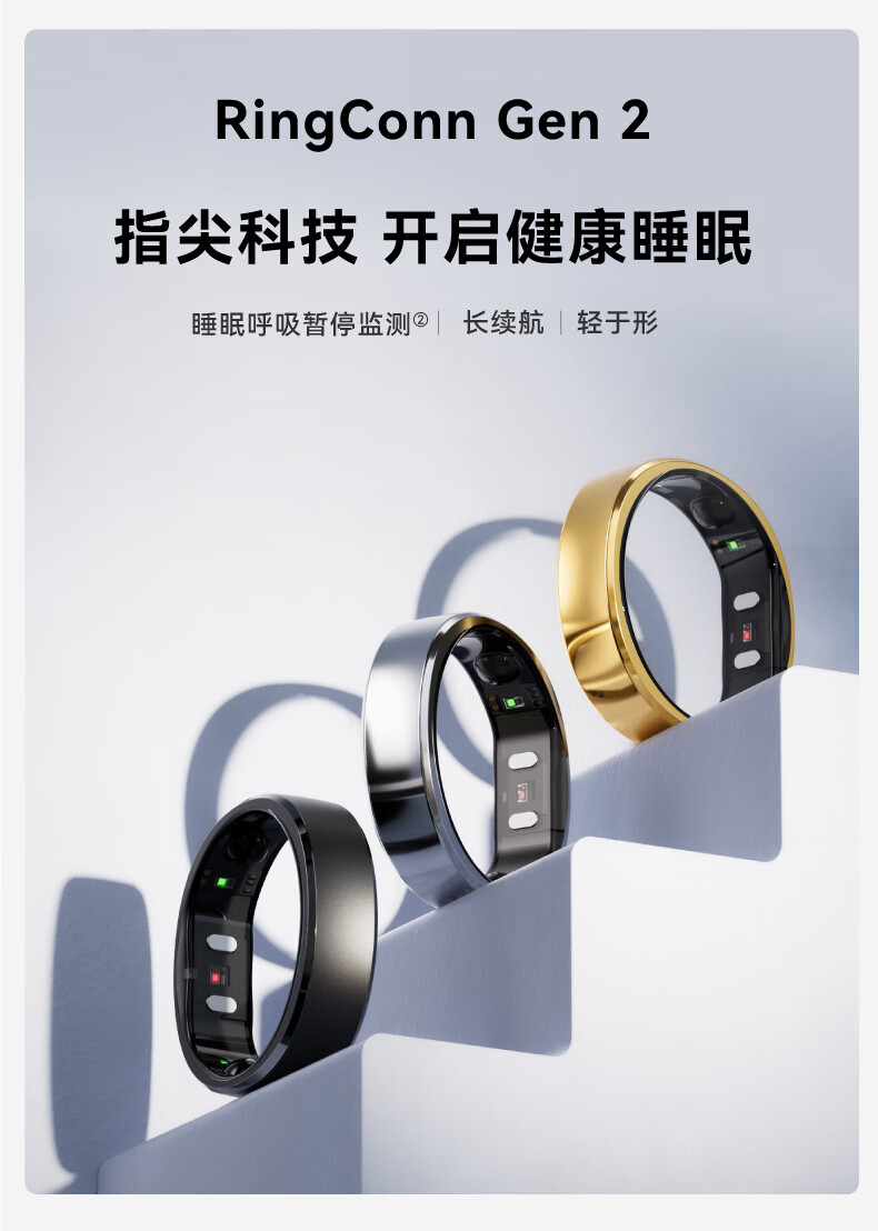 商品名称:RingConn Gen 2 智能戒指【新色上市】睡眠呼吸暂停监测心率异变血氧女性生理期预测 健康指导12天长续航 未来银