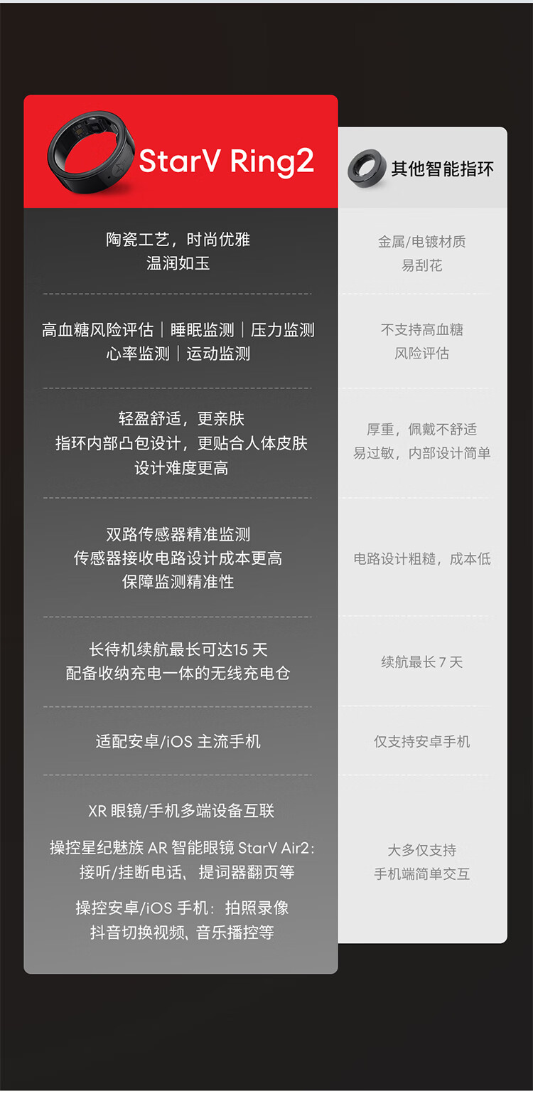 商品名称:魅族StarV Ring2智能戒指 睡眠心率血氧实时健康监测 长续航超薄防水指环10号 适配苹果华为三星手机
