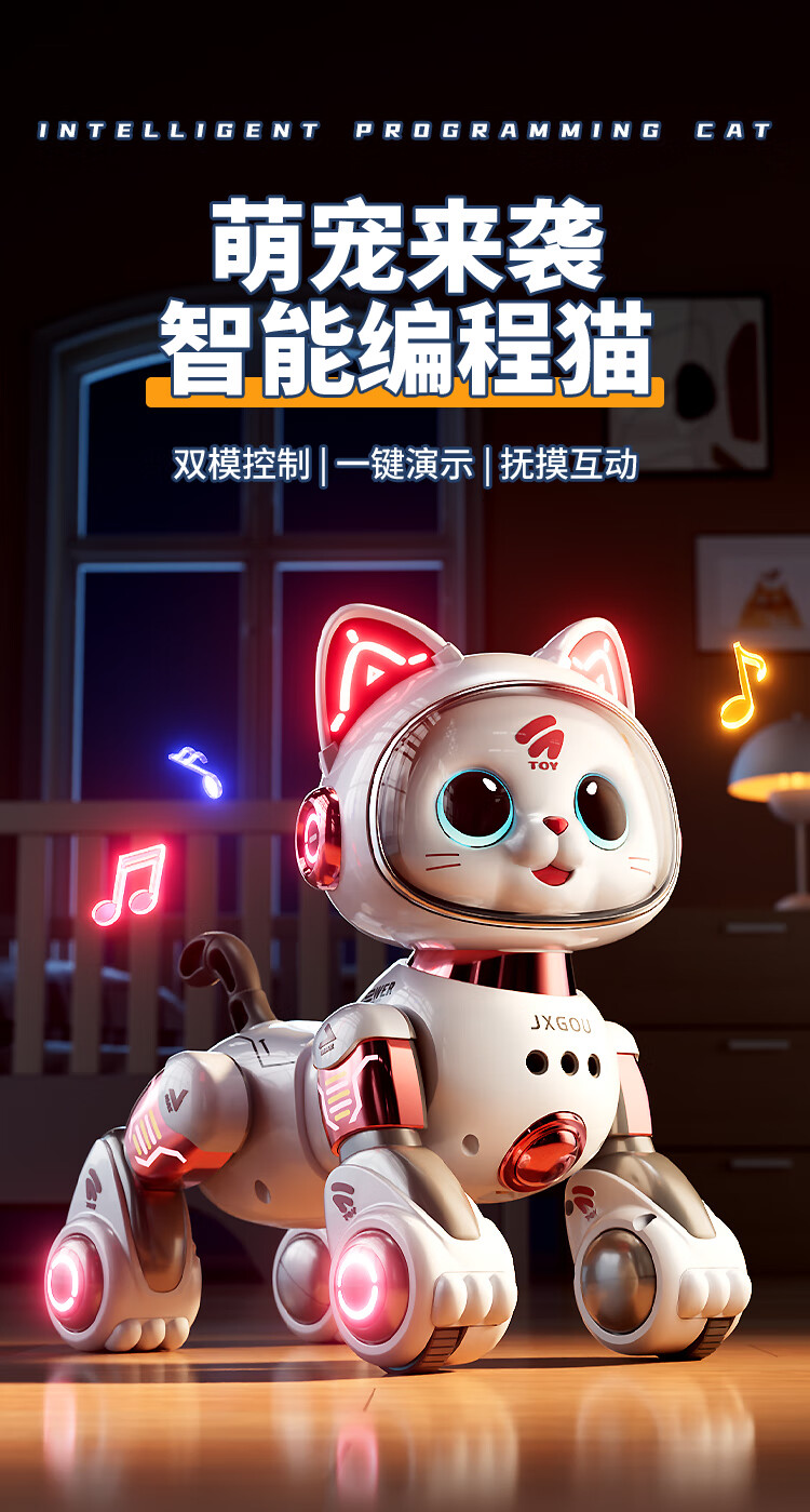 奥智嘉智能机器狗儿童玩具1-3岁女孩生日礼物早教AI机器猫编程机器人